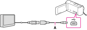 Anslut videokameran och den externa mediaenheten med USB-adapterkabeln (säljs separat).