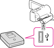 Använd den inbyggda USB-kabeln för att ansluta videokameran till en annan Sony DVD-brännare än DVDirect Express (säljs separat) eller liknande som är kompatibel med filmer i HD-bildkvalitet (högupplöst).