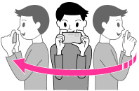 • 一定時間内に3D撮影画角に満たなかった場合、足りない部分はグレーで記録されます。この場合はカメラを速く動かすと最後まで記録されます。