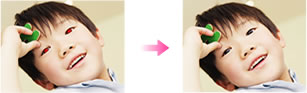 フラッシュ撮影時に赤く映った目を補正する。
