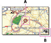 Si vous sélectionnez un point à l’écran, la carte affiche une zone ayant pour centre ce point. Sélectionnez