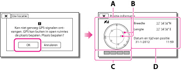 Zie pagina "Over GPS (HDR-TD20VE)" voor meer informatie over plaatsen of situaties waarin radiosignalen niet kunnen worden ontvangen.