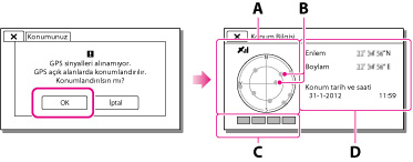 Radyo sinyallerinin alınamadığı konumlar ve koşullar ile ilgili ayrıntılı bilgi için, bkz. “GPS hakkında (HDR-TD20VE) ”.