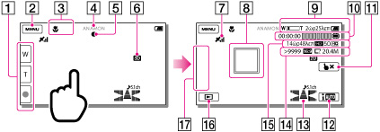 Κουμπί ζουμ (W: Ευρεία γωνία/T: Τηλεφακός), κουμπί START/STOP (σε λειτουργία εγγραφής ταινιών), κουμπί PHOTO (σε λειτουργία εγγραφής φωτογραφιών)