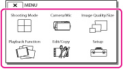 Категорії меню [Camera/Mic] та [Setup] мають підкатегорії. Виберіть піктограму підкатегорії, і на РК-екрані з’явиться перелік меню в обраній підкатегорії.