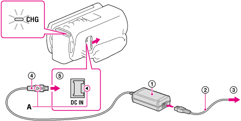 电池组完全充电时,CHG(充电)指示灯会熄灭。将电源适配器从本机的DC IN插孔拔出。