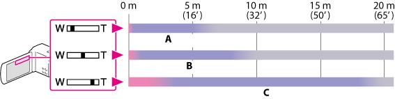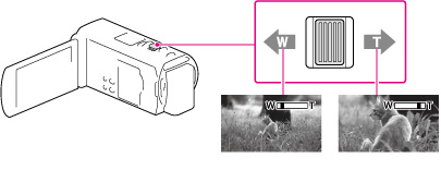 确保将手指一直放在电动变焦控制杆上。如果将手指移开电动变焦控制杆,电动变焦控制杆的操作声音也可能会被录制。