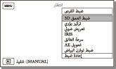 تظهر الشاشة [ضبط القرص]. كما تظهر الشاشة [ضبط القرص] عند ضغط الزر MANUAL والاحتفاظ بضغطه لبضع ثوان.