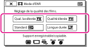 Vous pouvez changer le mode d'enregistrement afin de sélectionner la qualité du film pendant que vous tournez un film au mode de qualité d'image haute définition (HD). La durée d'enregistrement ou le type de support sur lequel il est possible de copier les images peut changer en fonction du mode d'enregistrement sélectionné. ([Standard