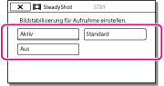 SteadyShot] ist auf einen anderen Wert als [Aktiv] gesetzt.