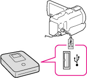 Utilize o cabo USB incorporado para ligar a câmara de vídeo a um gravador de DVD da Sony exceptuando o DVDirect Express (vendido separadamente), etc., que é compatível com filmes com qualidade de imagem de alta definição (HD).