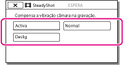 Para além da função SteadyShot equilibrada, a câmara de vídeo compensa a vibração da câmara na vertical e na horizontal.