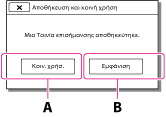 A: Εάν επιλέξετε [Κοιν. χρήσ.], μπορείτε να ανεβάσετε την ταινία επισήμανσης στο δίκτυο χρησιμοποιώντας το ενσωματωμένο λογισμικό "PlayMemories Home" [Πληροφ.] ή να δημιουργήσετε DVD χρησιμοποιώντας τη συσκευή εγγραφής "DVDirect Express" DVD. [Πληροφ.]
