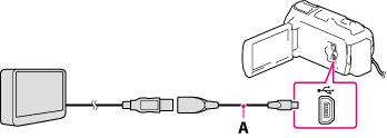 Připojte externí zařízení médií k videokameře pomocí adaptérového kabelu USB (prodává se samostatně).