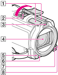Kun kiinnität linssin suojusta, kohdista linssinsuojuksen aukko-osa oikein videokameran salamaosan kanssa.