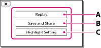 [Highlight Point]: Voit asettaa videon kohdat tai valokuvat, joita käytetään koostetoistossa. Toista haluamasi video ja valitse