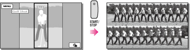 • Tallennettu kuva voi olla epäselvä, jos videokamera ei ole analysoinut lyöntiä oikein, koska [Golf Shot] -kuvauksen kohtauksen taustalla voi olla liikettä. Kuvat kannattaa tallentaa vakaissa oloissa (esimerkiksi käyttämällä jalustaa).