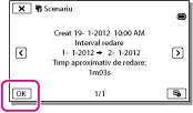 Puteţi salva o redare cu evidenţiere preferată sub forma unui „Scenariu”, cu o calitate a imaginii de înaltă definiţie (HD). Pot fi salvate până la 8 scenarii şi aceste scenarii pot fi redate doar cu camera video.