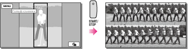 Если видеокамера не может обнаружить звука удара клюшки по мячу, видеокамера автоматически устанавливает момент удара за 0,5 секунды до нажатия кнопки START/STOP и записывает фильм в промежуток времени между 1,5 секунды до момента удара до 0,5 секунды после момента удара.