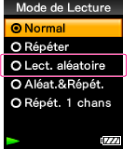 Par exemple, la procédure de réglage de l’option [Mode de Lecture] sur [Lect. aléatoire] est illustrée ci-dessous.
