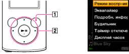 На экране воспроизведения музыки нажмите кнопку OPTION/PWR/HOLD.