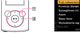 Na ekranie odtwarzania muzyki naciśnij przycisk OPTION/PWR/HOLD.