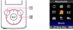 Das Menü „Hauptseite“ kann durch Gedrückthalten der Taste BACK/HOME des Walkman angezeigt werden.