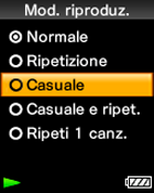 Ad esempio, di seguito sono riportate le operazioni per impostare l’opzione [Mod. riproduz.] su [Casuale].