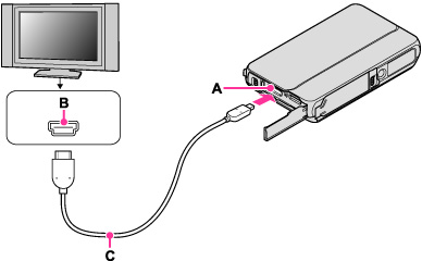 本機側はHDMIミニ端子、テレビ側はテレビの端子に合ったタイプのHDMIケーブルをお使いください。HDMI端子のないテレビではご覧になれません。