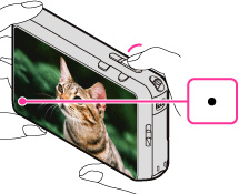 Sujete la cámara sin moverla como se muestra en la ilustración y componga la toma.