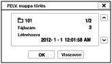 Ha az adott mappában zárolt képek vagy a fényképezőgéppel le nem játszható fájlok találhatók, akkor a készülék ezek kivételével törli a képeket, és a mappa megmarad.