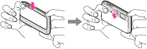 Tryk objektivdækslet nedad for at skifte til optagetilstand.