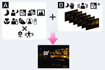 認識したシーンに最適な重ね合わせモードを自動的に選択し、モニターに