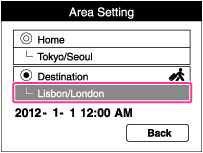 Zvoľte časť oblasti pre [Destination] a potom stlačte