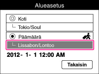 Käytät kameraa omalla alueellasi. Jos asetettu alue on muu kuin kotialue, alueasetus täytyy tehdä.