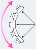 ก่อนอื่น ให้ท่านกดปุ่มชัตเตอร์ลงครึ่งหนึ่ง เพื่อล็อคโฟกัส ระดับแสง และสมดุลแสงสีขาว จากนั้นให้กดปุ่มชัตเตอร์ลงจนสุด แล้วจึงกวาดหรือหมุนกล้อง