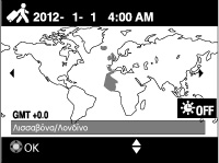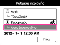 Μπορείτε να χρησιμοποιήσετε την κάμερα με τη ρύθμιση της ώρας που ισχύει στον προορισμό σας. Ρυθμίστε την περιοχή προορισμού.
