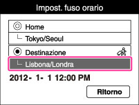 La fotocamera viene impostata sull’ora della destinazione. Impostare l’area di destinazione.