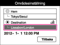Ställ in detta läge när du är ute och reser för att använda den tid som gäller där du befinner dig. Ställ in destinationsområdet.