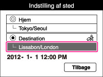 Du anvender kameraet indstillet til klokkeslættet på din destination. Indstil destinationsområdet.