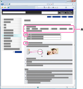 Použitím tlačidla „Dozadu“ prehľadávača sa vrátite na stránku, ktorú ste si prezerali predtým, alebo pomocou zobrazenej postupnosti otváraných stránok (A) zobrazíte požadovanú stránku.