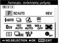 (Λειτουργ. ανάκλησης μνήμης) αφού ολοκληρώσετε τις ρυθμίσεις λήψης, δίνεται προτεραιότητα στις καταχωρημένες ρυθμίσεις και οι αρχικές ρυθμίσεις μπορεί να καταστούν μη έγκυρες. Ελέγξτε τις ενδείξεις στην οθόνη πριν από τη λήψη.