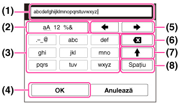 Dacă trebuie să introduceţi manual litere sau cifre, puteţi utiliza tastatura afişată pe ecran.