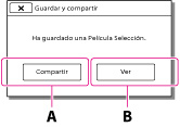 A: Si selecciona [Compartir] podrá cargar la Película de selección a una página Web utilizando el software “PlayMemories Home” incorporado. [Detalles]