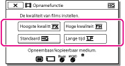 U kunt de opnamestand omschakelen om de filmkwaliteit te selecteren terwijl u films van high-definitionkwaliteit (HD) opneemt. De opnameduur van de opnamemedia verschilt volgens de opnamestand.