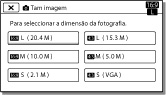 Pode seleccionar um tamanho para as fotografias que vai tirar.