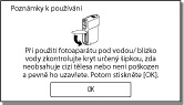 Zobrazí se hlášení, které je třeba potvrdit před použitím za účelem zachování odolnosti proti vodě.