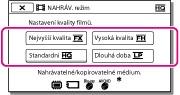 Režim nahrávání můžete nastavit tak, aby při nahrávání ve vysokém rozlišení (HD) bylo možno vybrat kvalitu videoklipu. Doba nahrávání na záznamové médium se mění podle režimu nahrávání.