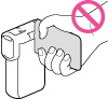 Na písečné pláži nebo v prašném prostředí. Pokud se do videokamery dostane písek, mohla by se poškodit. Některá poškození nelze opravit.