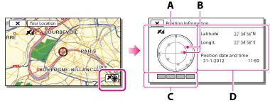 Om videokameran inte kan skaffa aktuell platsinformation, visas trianguleringsinformationen.